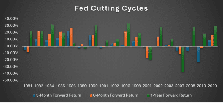 However, in our estimation, there has not been one particular group that has benefit substantially more than others as to distort the performance that equity markets have experienced in the wake of FOMC fed rate cuts. Now that we have taken a step deeper into the S&P 500 itself, let’s expand our deep dive into the FOMC cutting cycles themselves.